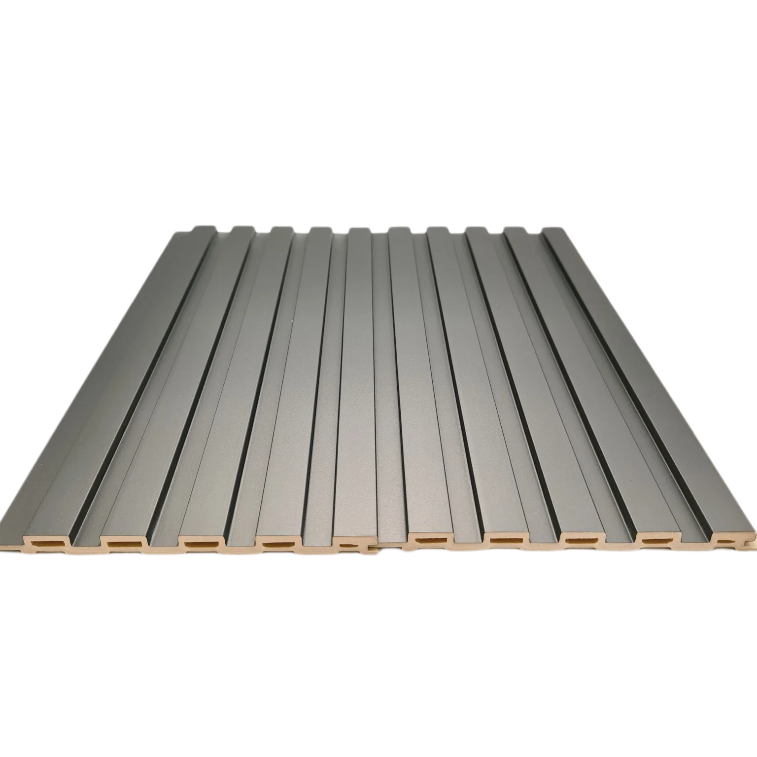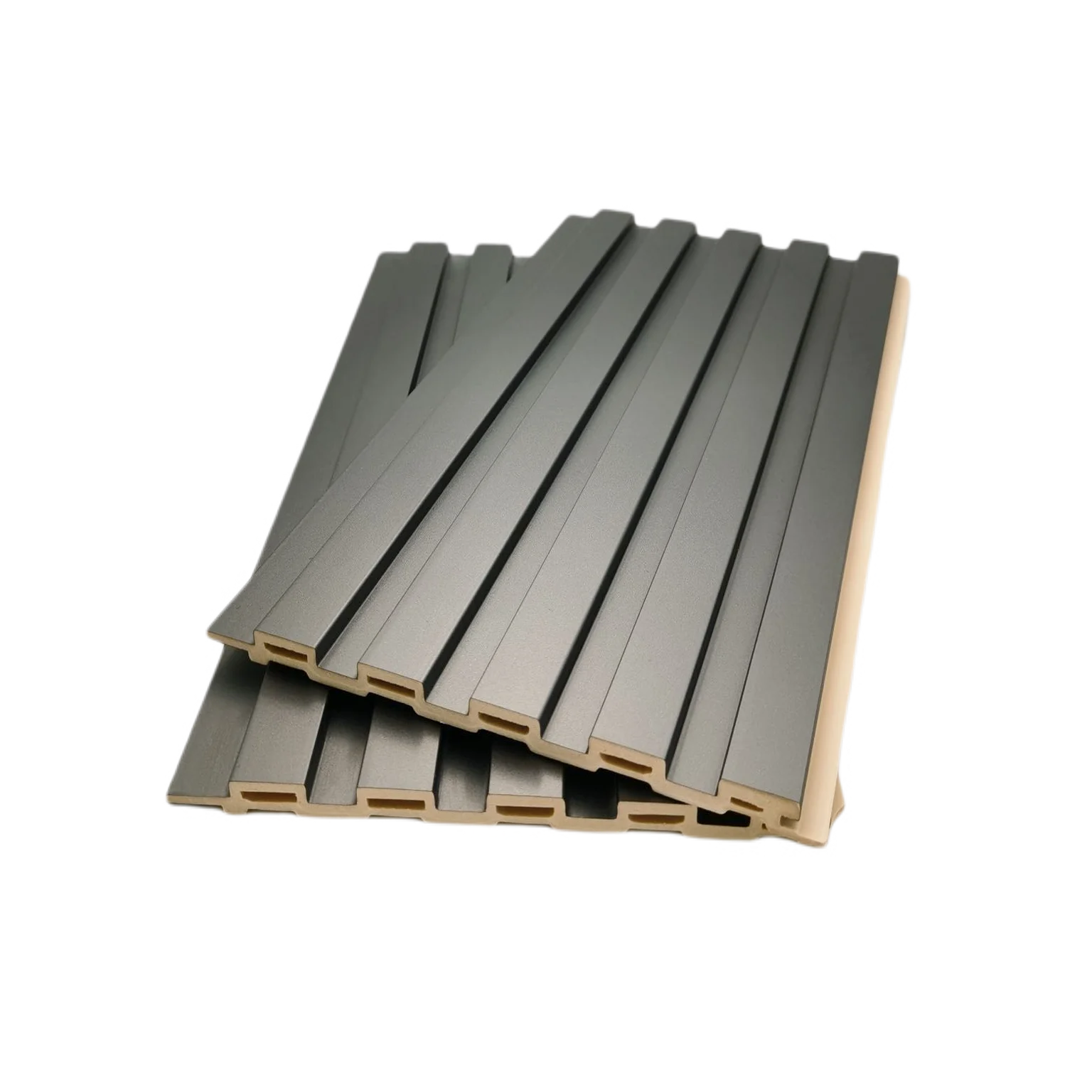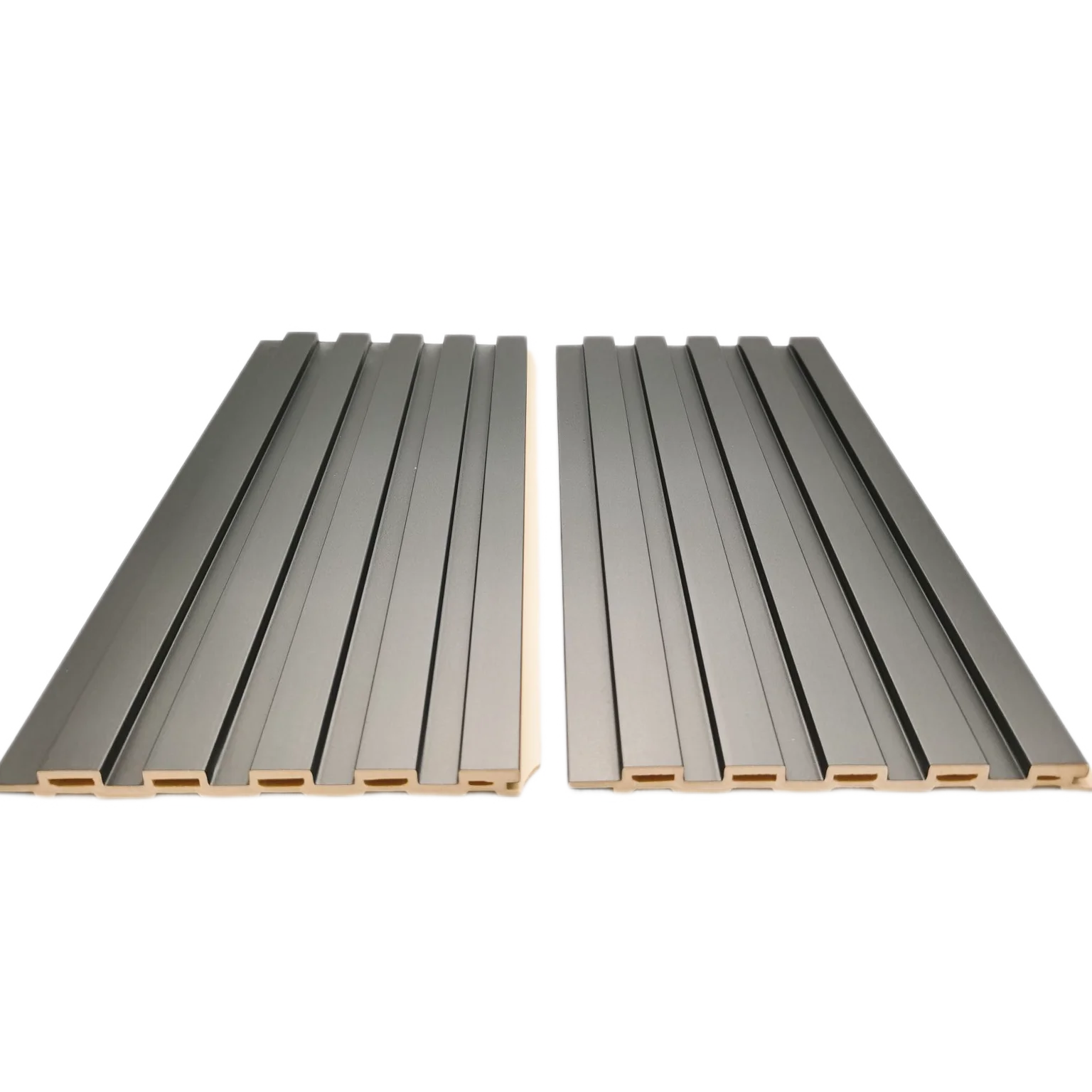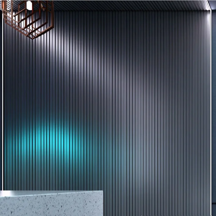 Tiszta Fekete Szürke Szín Modern Dizájnú Íves Görbe Díszítő WPC PVC Panel Belső Beltéri Faldekorációhoz Burkoláshoz