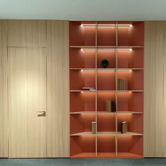 Melinco Pintu Tersembunyi Pintu Interior Dinding yang Dapat Disesuaikan Lemari Pencegahan Kebakaran Manual Sisi Desain Modern Komposit Polimer