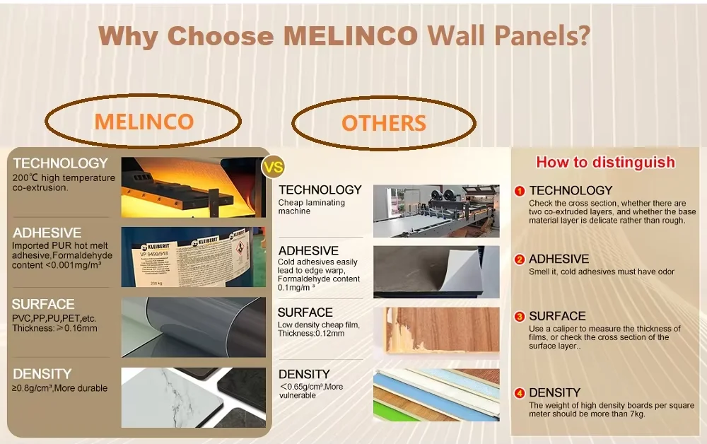 Melinco Hotel Myndun Vatnsþétt Veggbrotar Inngangshúsmyndun WPC Bræði Bamboe Viður Rind Brotar fyrir Lífsbrot