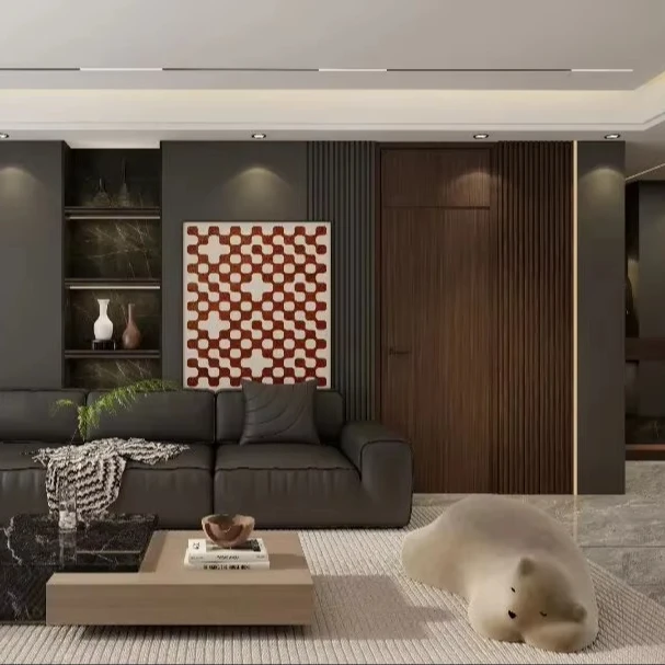 Melinco 3D Design Modern Manual Composite Interior Doors Customizable Wall Cabinet Doors Same Color for Living Room Villa Hotel