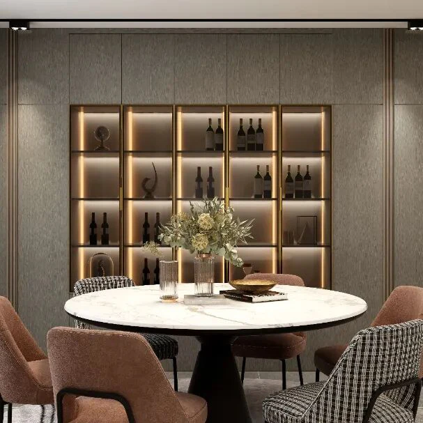 Melinco Dark Tone Modern Living Room Cabinet Coordinated Matte Walls Doors High Quality Eco-Friendly Durable for Villa Hotel