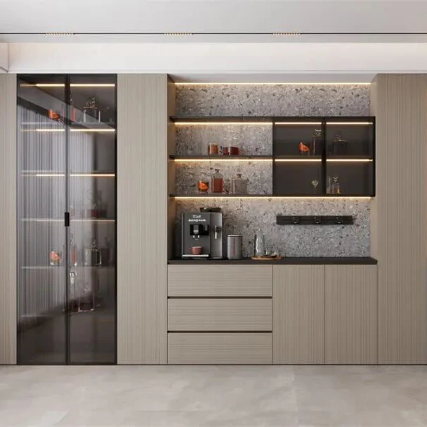 Melinco Extendable Living Room TV Cabinet and Home Bar Feature Wall Set with Color-Matched Interior Doors Customizable Cabinet