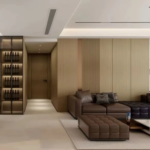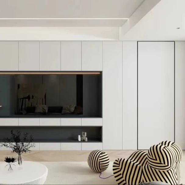 Melinco Extendable Living Room TV Cabinet and Home Bar Feature Wall Set with Color-Matched Interior Doors Customizable Cabinet