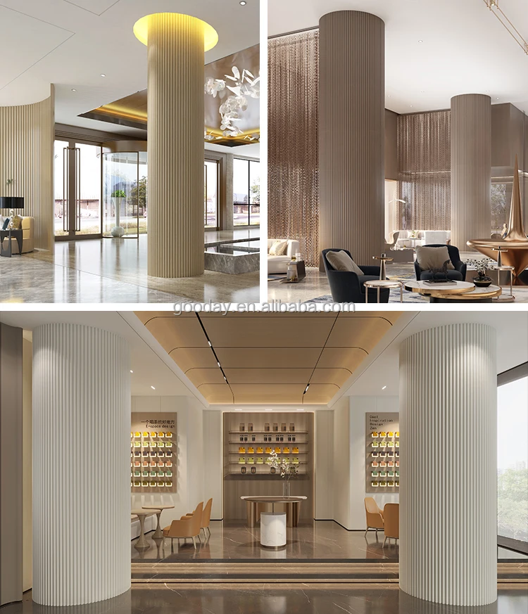 Melinco Arrival WPC Eğri Duvar Panelli Döner Kafes İç Dekoratif PVC Kaplama Oluklu Çubuklu Silindirik Kolon İçin