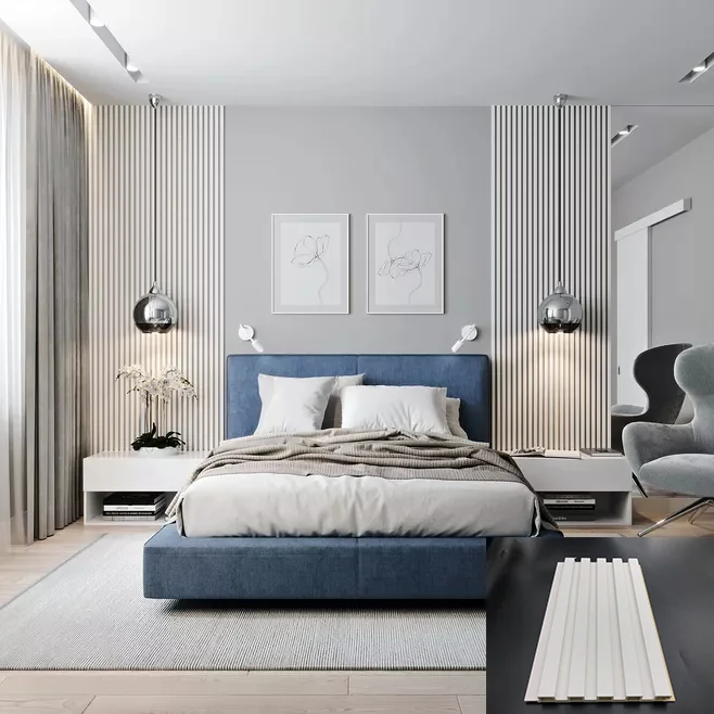 Saf Siyah Gri Renk Modern Tasarım Yay Eğri Dekor WPC PVC Panel İç Mekan Duvar Dekorasyonu Kaplama