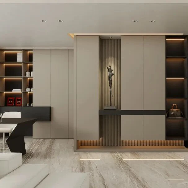 Melinco Uzatılabilir Oturma Odası TV Ünitesi ve Renkli İç Kapılarla Eşleşen Ev Barı Özellik Duvar Seti Özelleştirilebilir Dolap